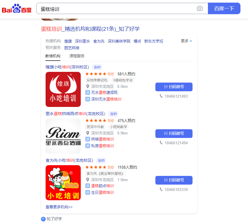 門店付費授權入駐知了好學后,流量可覆蓋百度系app的搜索、信息流、地圖等多渠道用戶場景,門店品牌、詳情信息及教學課程可快速獲得海量曝光,精準連接門店與用戶,讓教育機構獲客不再發愁。